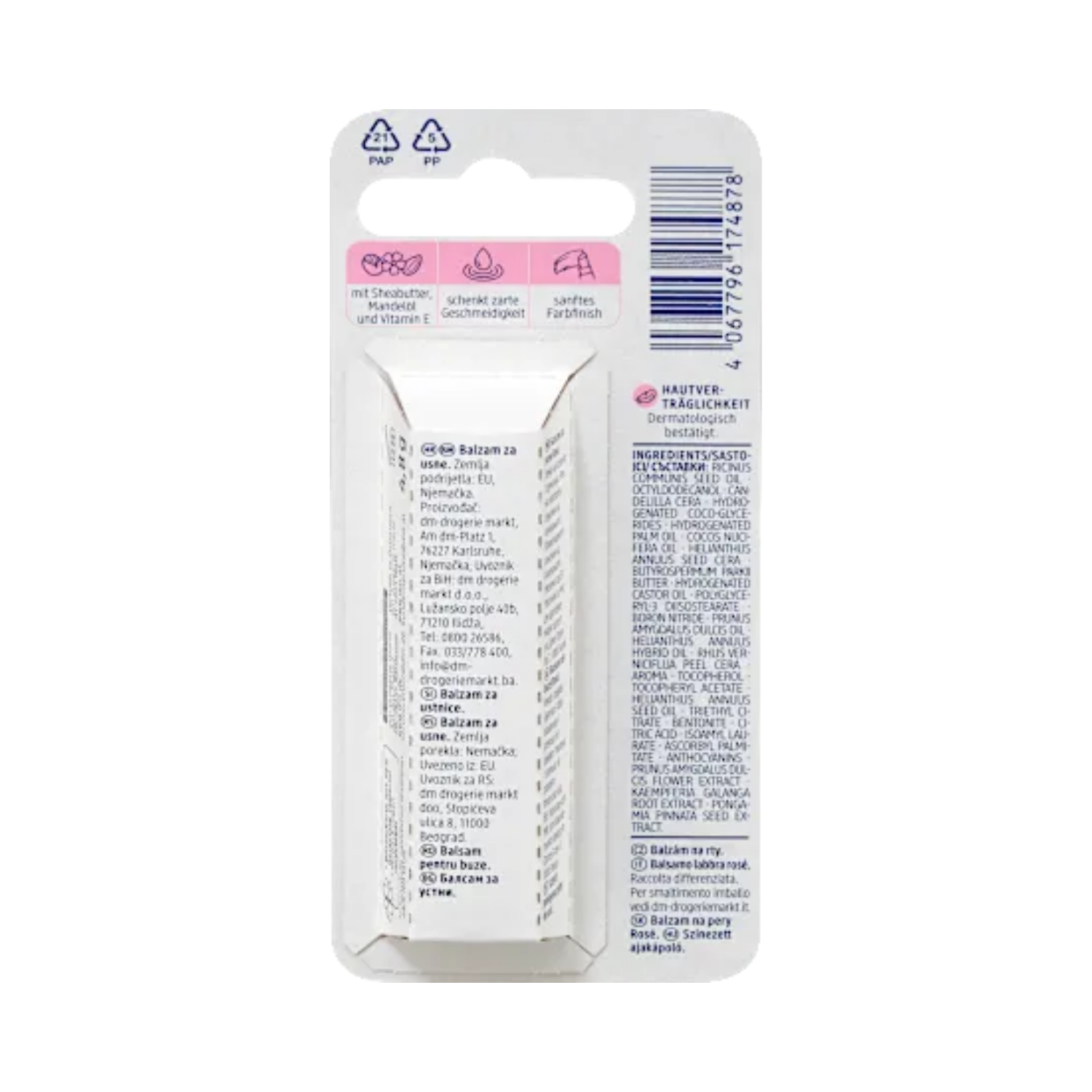 Give your lips a touch of soft color and luxurious care with Balea Lip Care Rosé. This vegan lip balm combines almond oil, shea butter, and vitamin E to keep your lips smooth, hydrated, and naturally beautiful.