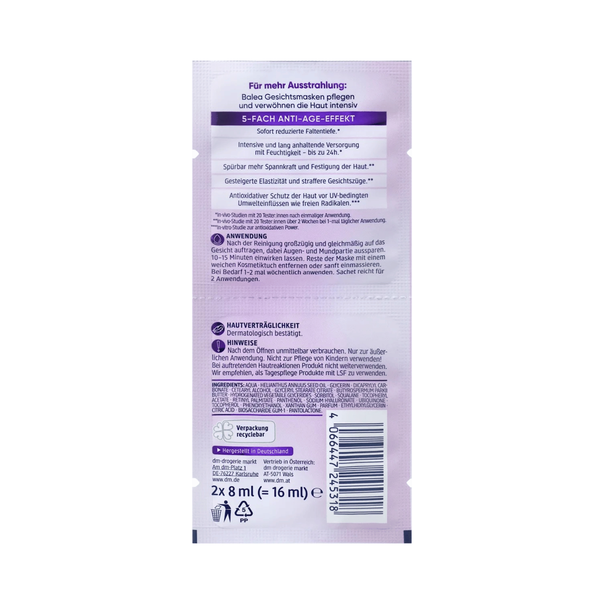 Be the first to review “Balea Retinol Face Mask, 16 ml (2×8 ml) – 5-in-1 Anti-Age, Firming & Smoothing”