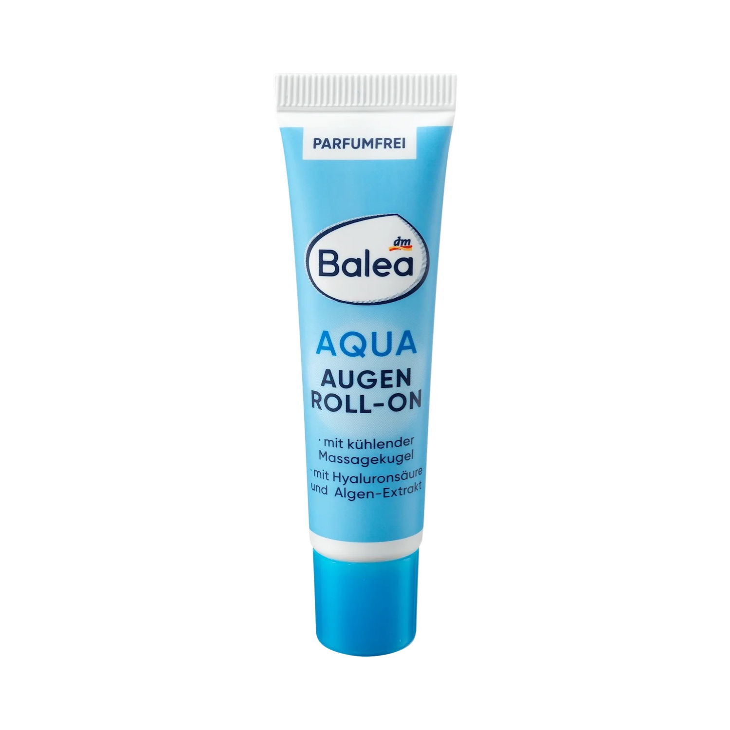 The Balea Aqua Eye Roll-On provides intensive, long-lasting hydration and helps to visibly reduce fine lines and puffiness. Enriched with hyaluronic acid, algae extract, and vitamin E, the cooling metal massage roller stimulates microcirculation, soothing tired eyes and refreshing the skin.