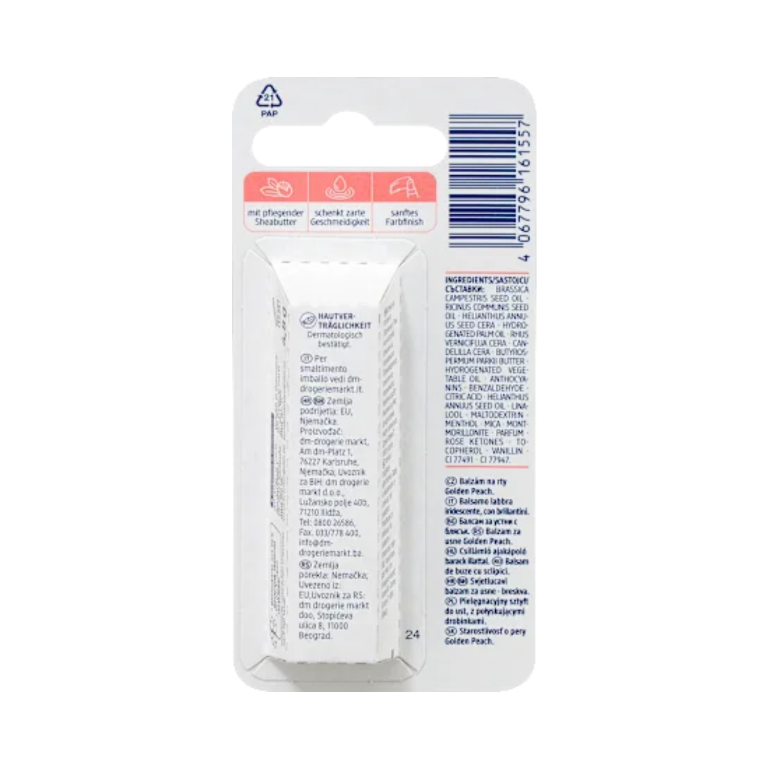 Give your lips a touch of care and color with Balea Golden Peach Lip Balm. Infused with nourishing shea butter, this balm pampers your lips with long-lasting softness and a subtle peachy tint. Its creamy texture glides on smoothly, leaving lips hydrated, protected, and silky smooth throughout the day.